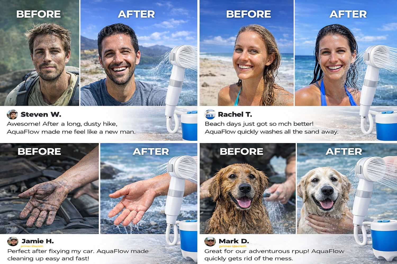 PrimeSelect™ AquaFlow turns any water source into a refreshing, comfortable shower in minutes. Designed for life on the go, it delivers smooth water flow, reliable performance, and total convenience wherever you are. From camping and beach trips to everyday outdoor tasks, customers love how easy it is to stay clean, refreshed, and comfortable — no matter the location.